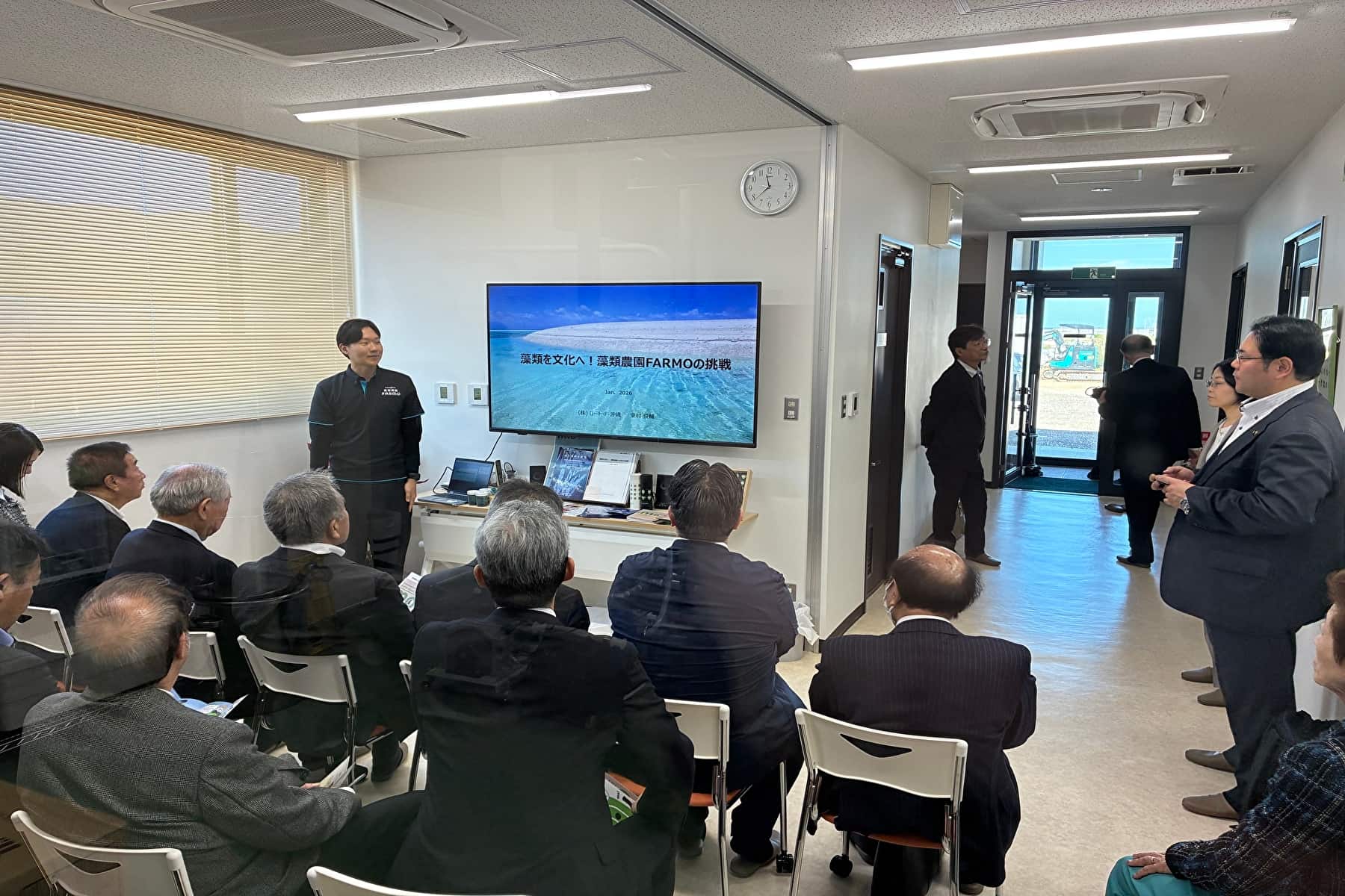 八戸市議会議員連盟の皆様(計26名)が、藻類農園FARMOを視察にお越しくださいました。